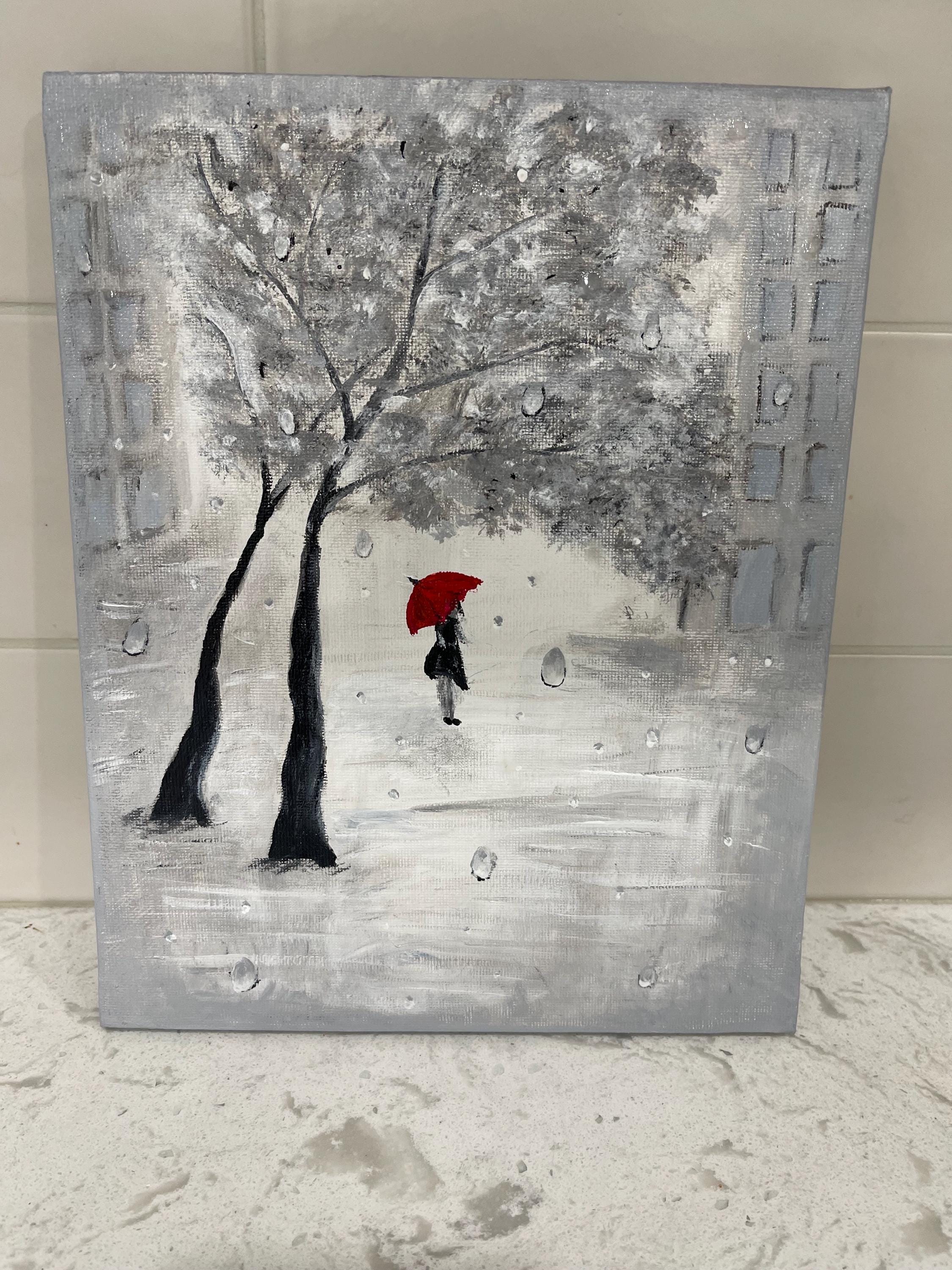 A grey rainy day acrylic painting small modern decor suitable for accent wall or shelve/counter display to compliment your interior. Perfect for adding charm to any room – from your bedroom to your workspace. Acrylic on canvas available for instant digital download.